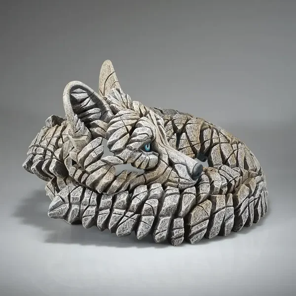 Deze prachtig opgerolde poolvos straalt een serene kalmte uit die je interieur direct verrijkt. De sierlijke houding en het zachte kleurenspel maken dit beeld tot een uniek kunstobject – een subtiele blikvanger met karakter.
